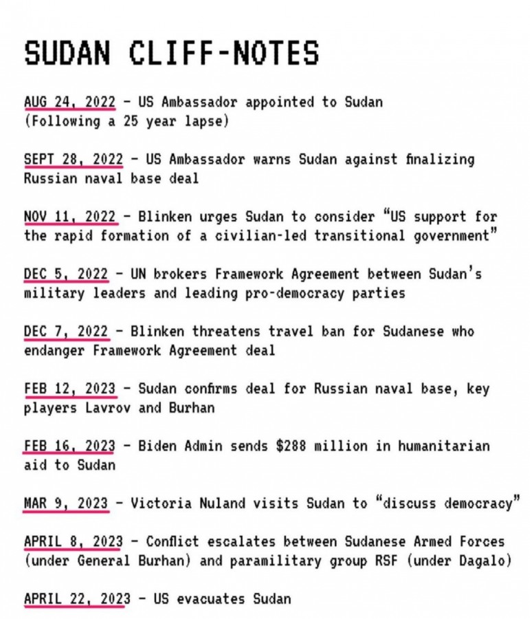 Připomeňme, že Rusko a Súdán podepsaly dohodu o spolupráci v oblasti vojenského výcviku, výměny zkušeností a vplutí válečných lodí do přístavů obou zemí. Dokument počítá s vytvořením bodu materiální podpory u Rudého moře v Súdánu, který by měl přijímat válečné lodě s jadernými motory.