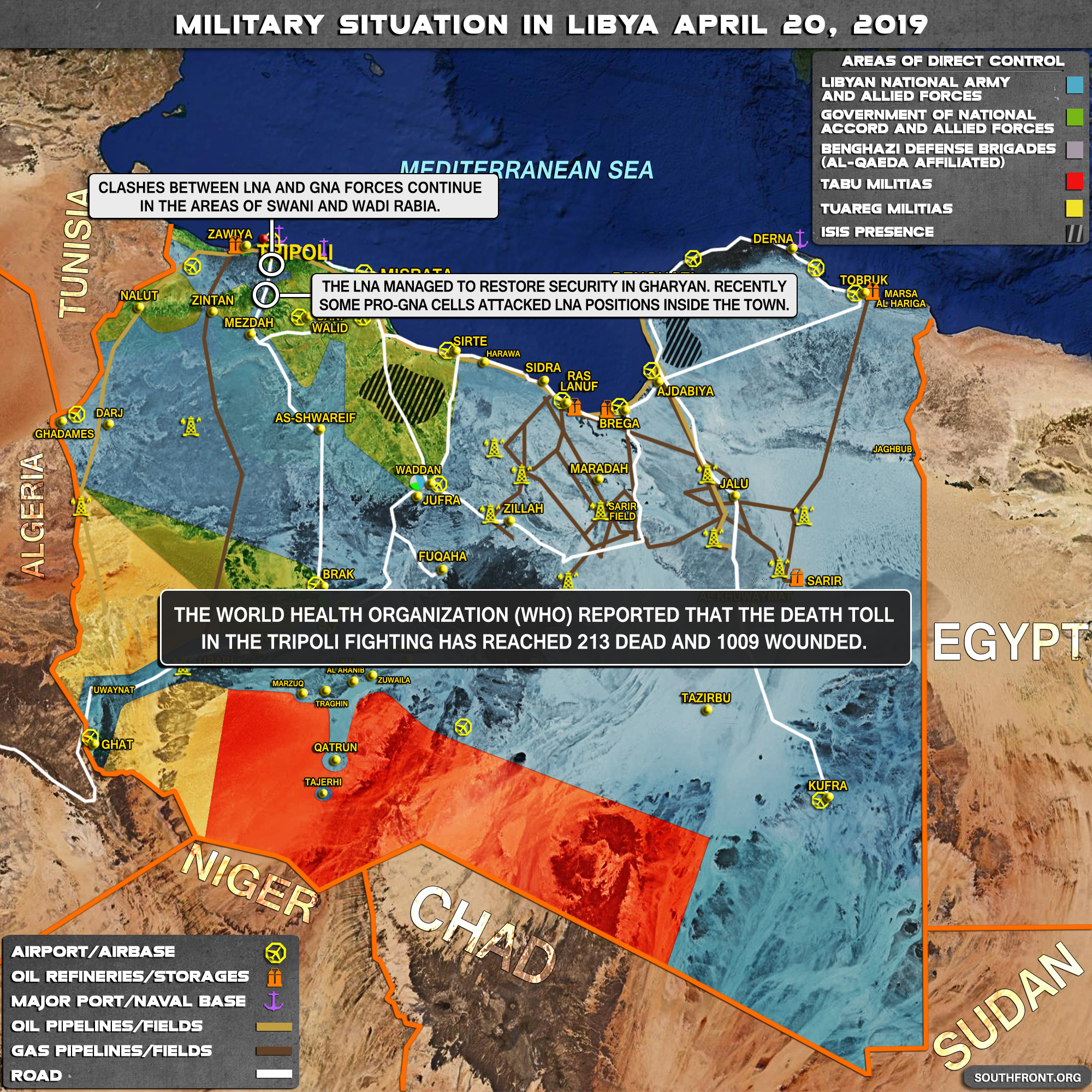 VOJENSKÁ SITUACE V LIBYI 20. DUBNA 2019 (AKTUALIZACE MAPY)