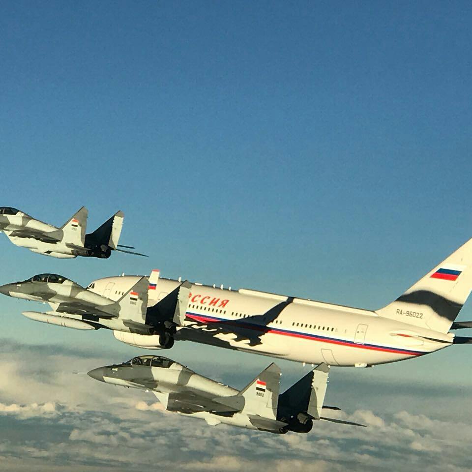 Pondelok 11.12.2017 Ruský prezident Putin na návšteve v Egypte v doprovode lietadiel MiG-29 Egyptských vzdušných síl