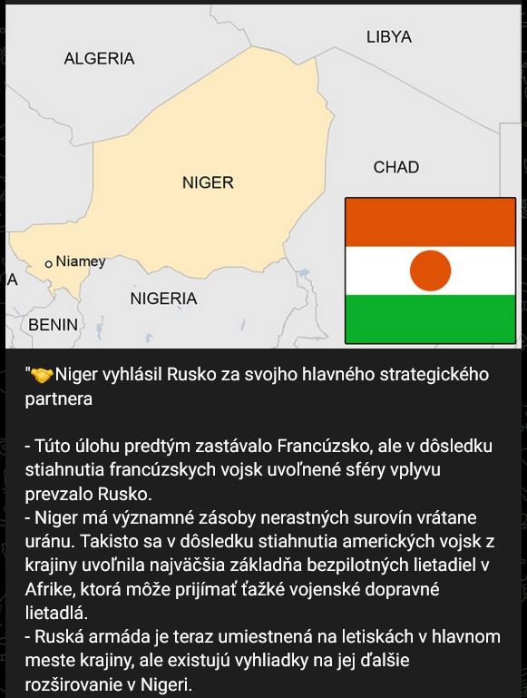 Niger vyhlásil Rusko za svojho hlavného strategického partnera