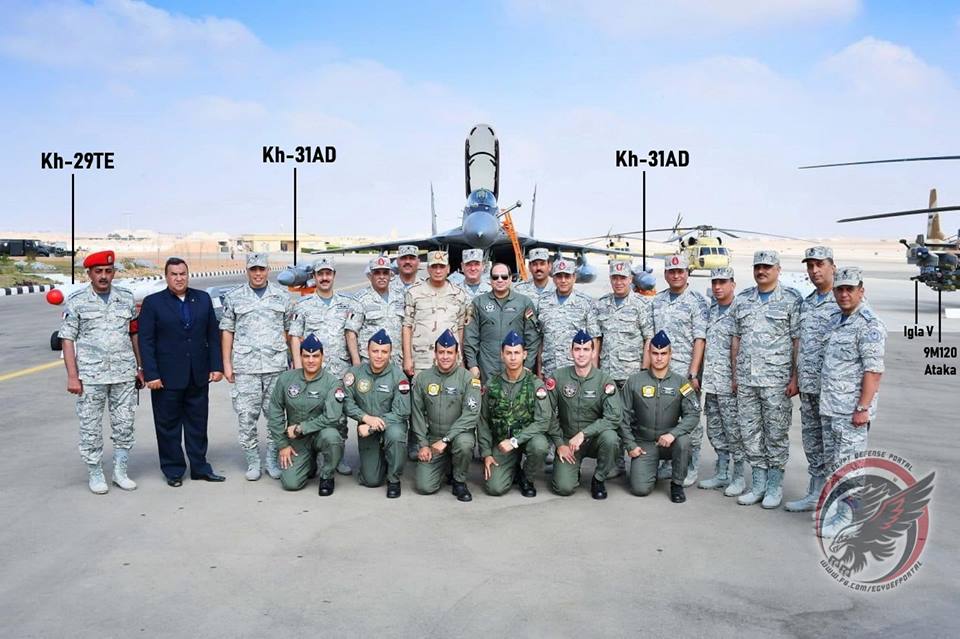 Za vojakmi lietadlo MiG-29M, pred lietadlom na vozíku rakety Ch-31AD (proti lodné, hlavica 110kg, dosah 120-160km) na vozíku celkom vľavo Ch-29TE (proti zemná s TV navádzaním, hlavica 320kg, dosah 30km). Celkom vpravo krídlo Ka-52K, proti lietadlová Igla-V (IR navádzanie, dosah 5,3km) a proti tanková / zemná 9M120 Ataka (dosah 6/8km, priebojnosť 850/950mm pancierom, rýchlosť 1450km/h). Za Ka-52 v pozadí "púštne" Sikorsky UH-60.