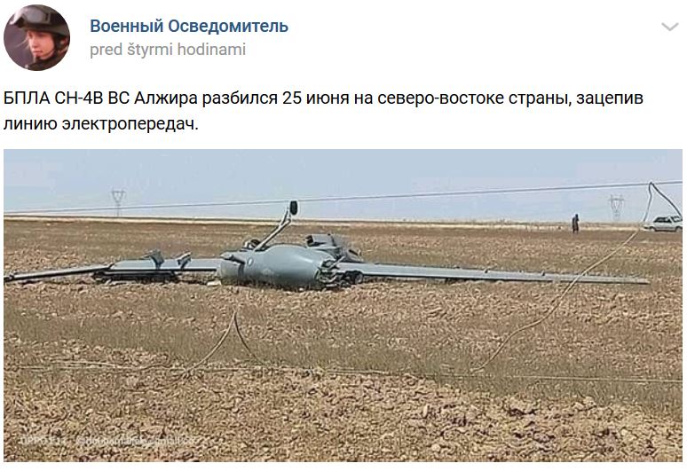 Alžírsky dron CH-4B zachytil o elektrické vedenie: