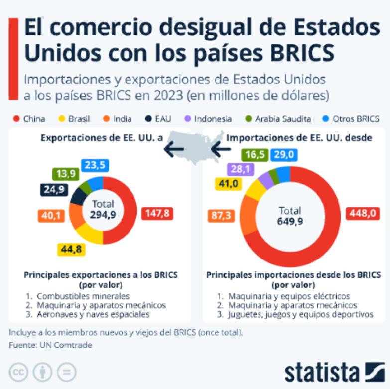 Podle nejnovějších údajů OSN je obchod mezi Spojenými státy a zeměmi BRICS výrazně nevyvážený.