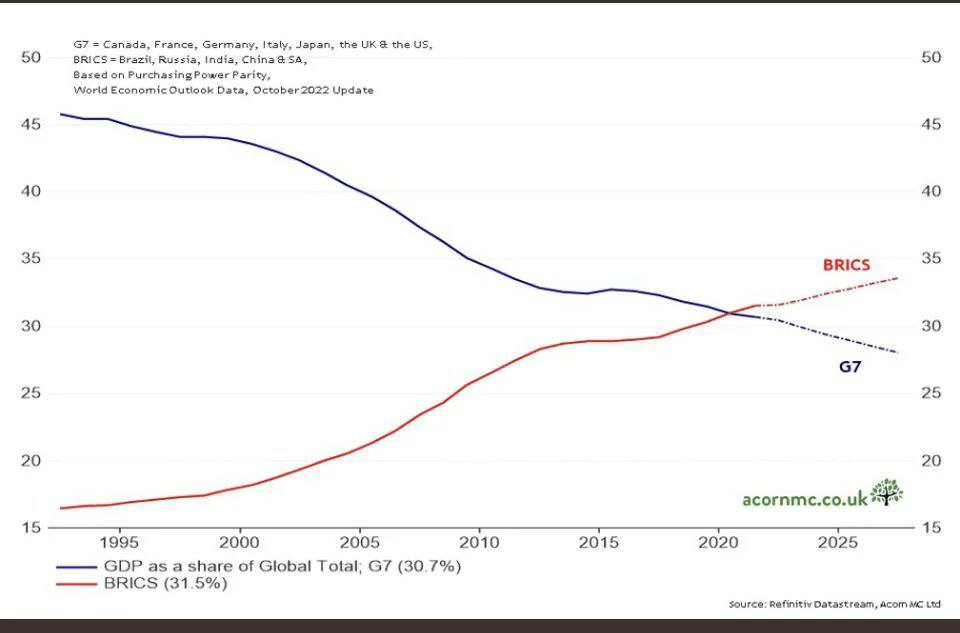 BRICS překonal skupinu G7, pokud jde o světové HDP.