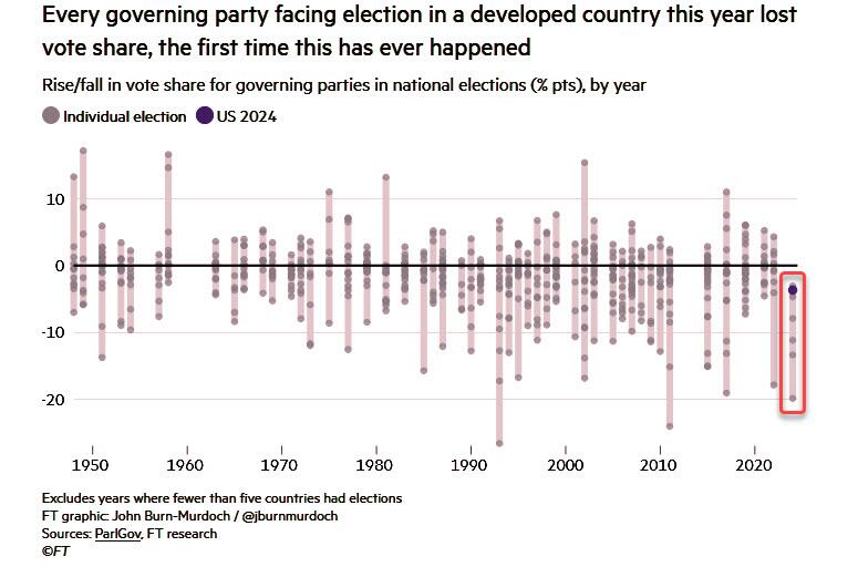 2) Americká globálna voľba. Voliči a súdy vynesú svoj verdikt nad Donaldom Trumpom, ktorý má šancu získať prezidentský úrad jedna ku trom. Výsledok môže rozhodnúť niekoľko desiatok tisíc voličov v niekoľkých rozhodujúcich štátoch. Dôsledky však budú globálne a ovplyvnia všetko od klimatickej politiky až po vojenskú podporu Ukrajine. Zmanipulovanie volieb v Rusku môže znamenať, že osud Vladimira Putina bude závisieť viac od amerických voličov ako od ruských.