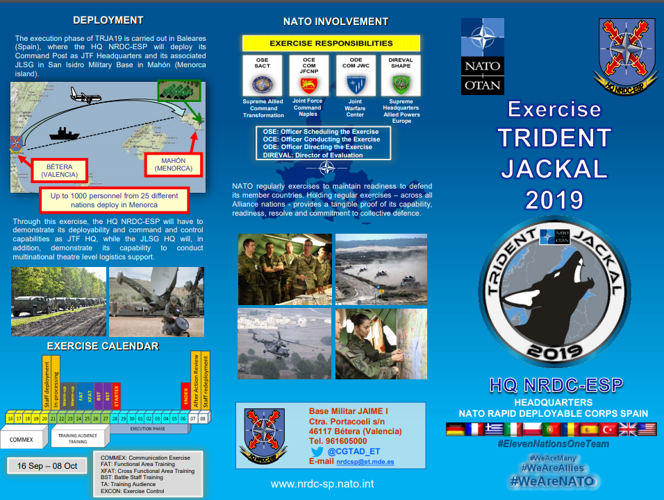 Ve Valencii od 16.9 do 8.10 tam probíhalo velké mezinárodní cvičení Trident Jackal 2019.
