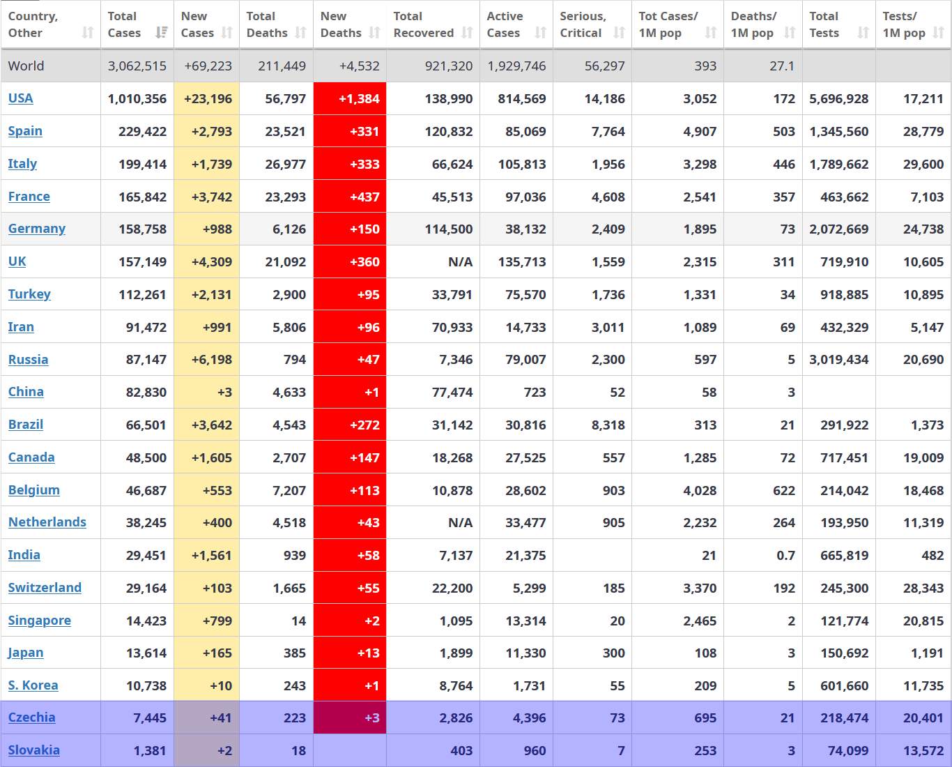Za povšimnutie stoja obrovské (5000+) prírastky počtu chorých v Rusku v posledných dňoch. Zvlášť to vynikne po predchádzajúcich relatívne veľmi malých prírastkoch.
