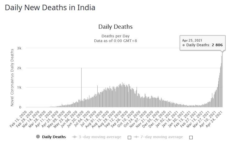 V počte mrtvych je zatiaľ India štvrtá (195 116) - po USA (586 152), Brazilii (390 925) a Mexiku (214 853).