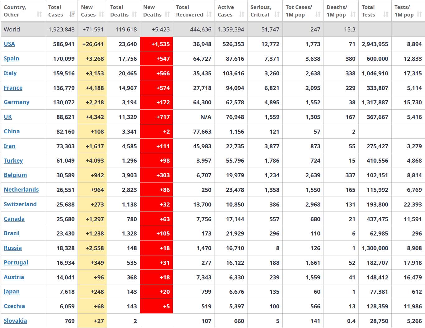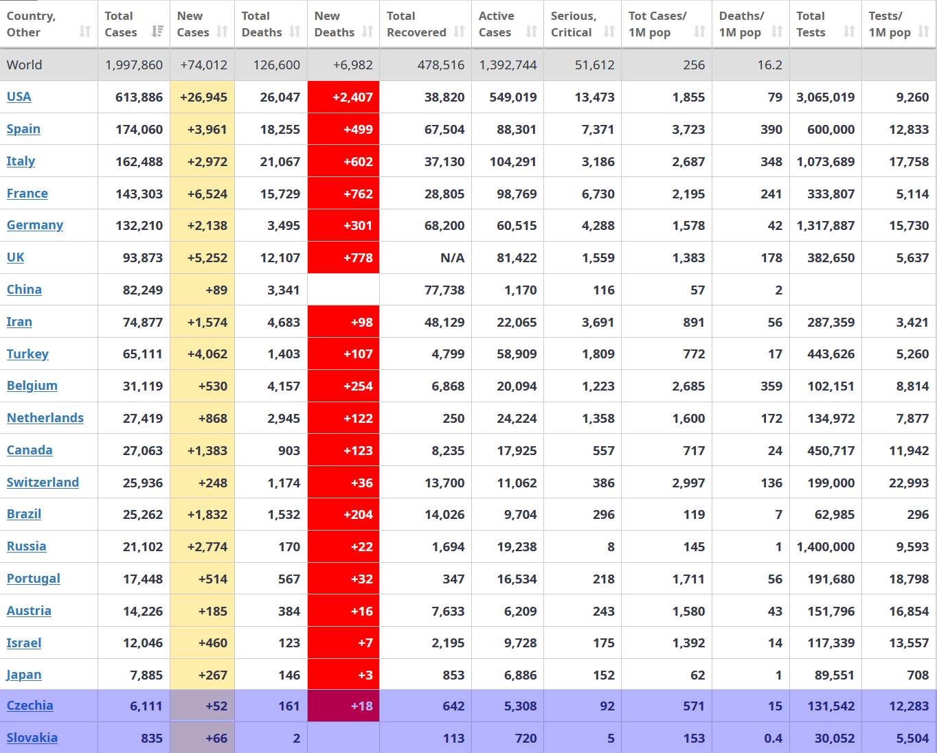 Aktuálne je to už vyše 2 miliony prípadov celosvetovo, a 127 tisíc mrtvych...