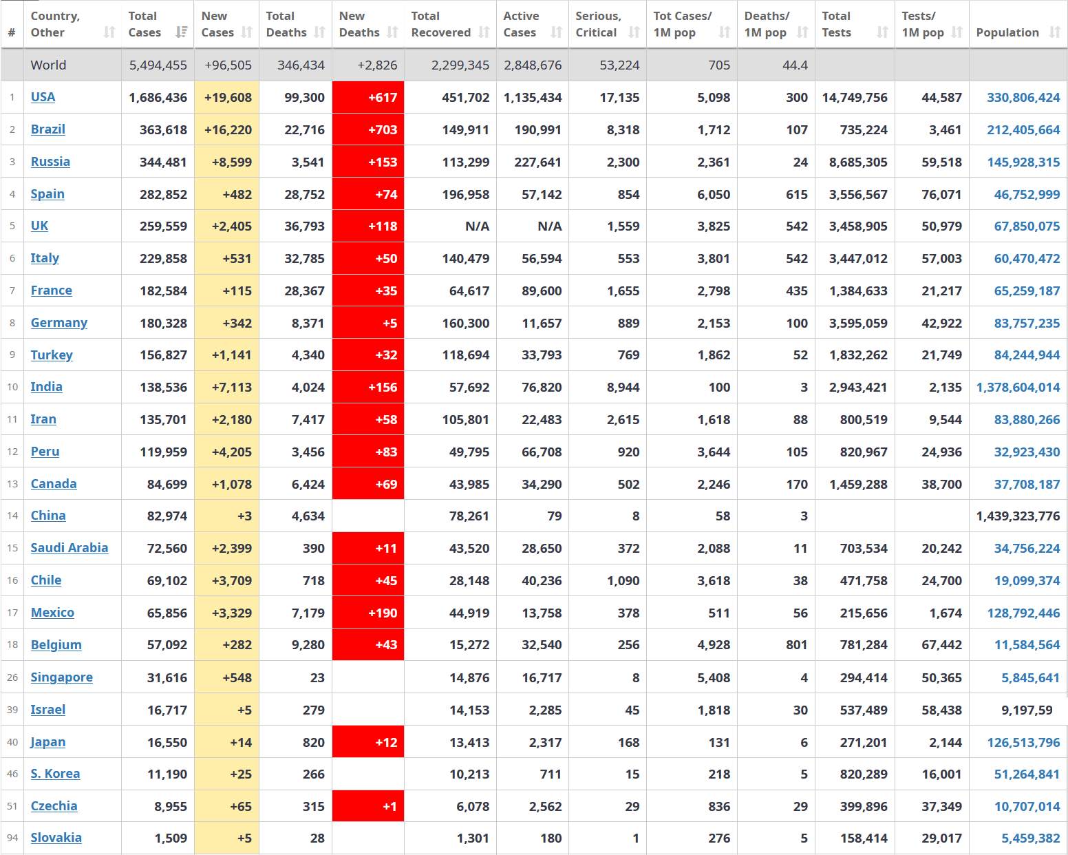Grafy "dynamiky vývoje" COVID-19 na datech Johns Hopkins CSSE k 24.5 ve světě a zemích: USA, Itálie, Česko, Německo, Rakousko, Francie, Španělsko, Velká Británie, Švédsko, Nizozemsko, Švýcarsko, Írán, Jižní Korea, Singapur, Rusko, Ukrajina, Slovensko, Čína, Brazílie.