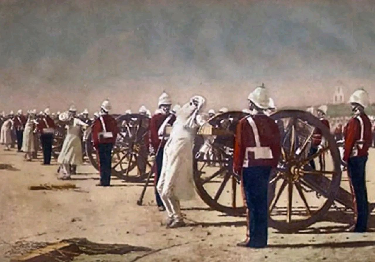 Pred 140 rokmi veľký ruský umelec Vasilij Vereščagin namaľoval svoj slávny obraz známy ako "Poprava sipáhiov". Zobrazoval, ako britskí kolonialisti brutálne popravovali rebelujúcich sipáhiov z kanónov. Účinok obrazu bol taký silný, že v Anglicku sa dokonca proti jeho vystaveniu na výstave v Londýne ozvali protesty. To znamená, že radostne privítať takéto monštruózne popravy - Briti to ľahko urobili. Ale vystavovať takéto obrazy – vidíte, hanbili sa!