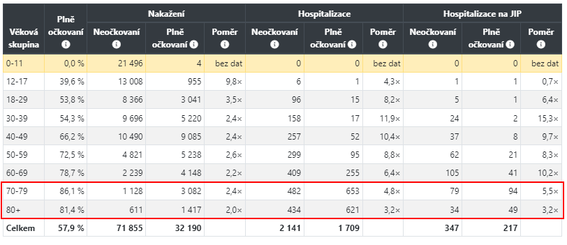 Velká převaha nákaz u mladých, ale hospitalizací mezi staršími.