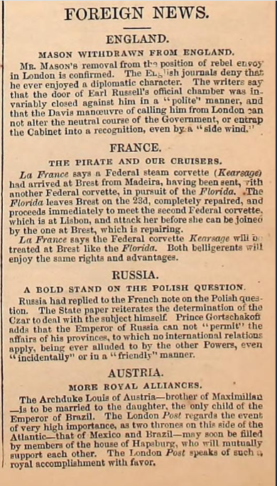 O několik let později car vyprávěl sled událostí příteli. Necituji doslovně, ale spíše interpretuji obsah: „Na podzim roku 1862 mi zástupci anglické a francouzské vlády navrhli, abych se připojil k unii evropských mocností, které by pak jako celek uznaly nezávislost jižních států Ameriky.