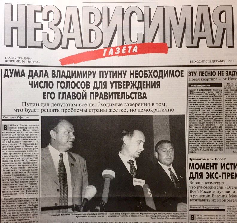 Pred dvadsiatimi rokmi - 16. augusta 1999 - ruská Štátna Duma potvrdila V.V. Putina vo funkcii predsedu vlády