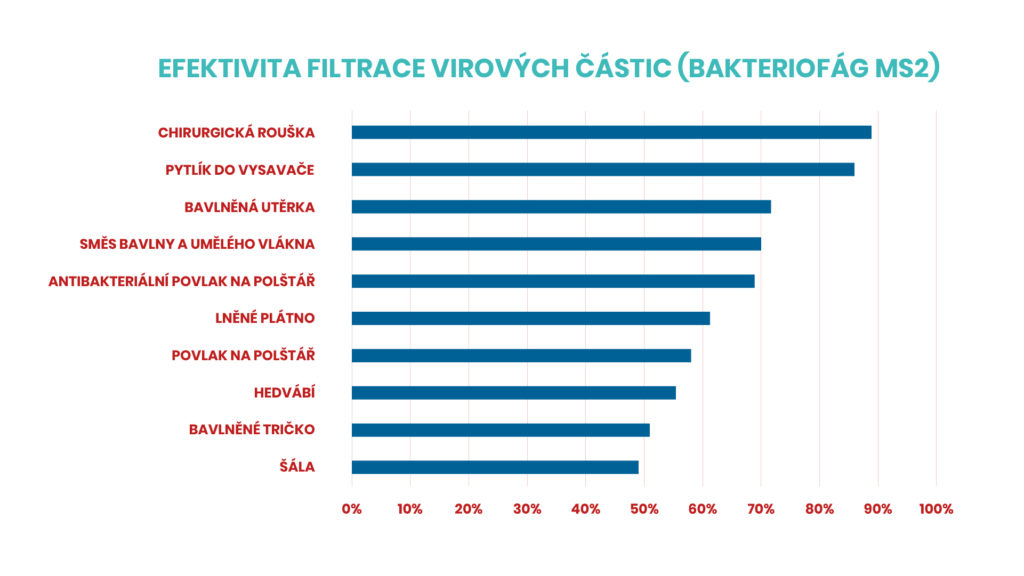 Účinnost různých materiálů při filtraci virových částic bakteriofágu MS2 o velikosti pouhých 25 nanometrů