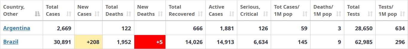 Koronavirová pandemie v Jižní Americe: Brazílie versus Argentina