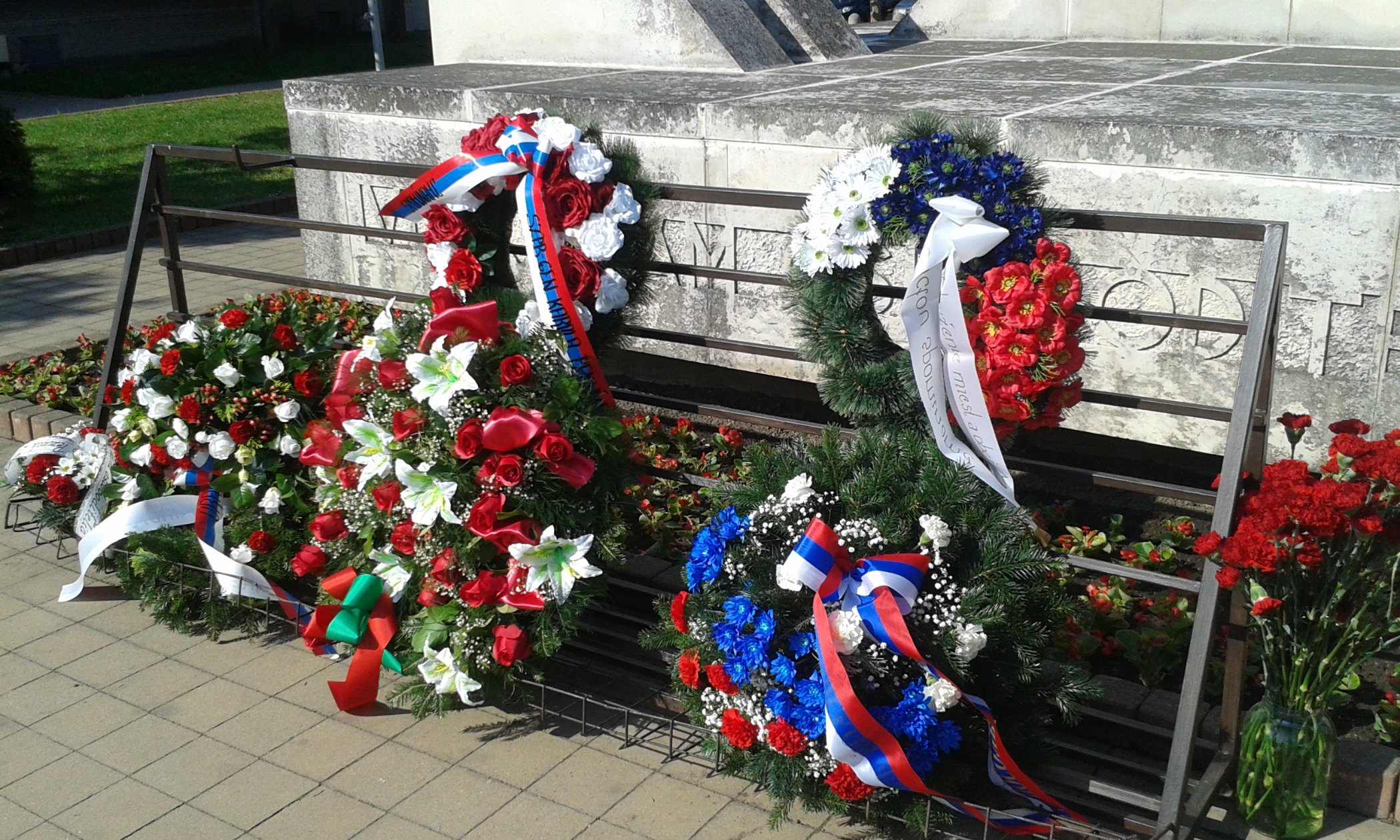 Taketo fotky budu onedlho patrit do: "Historia, ktora sa nesmie učit" . Včera bola slavnost k vyročiu vitazstva v Druhej svetovej. U nas v Pezinku možno naposledy ešte hrali rusku hymnu, visi ruska zastava, aj pozvali niekoho z ruskej ambasady. Bohužial došiel som neskoro už po slavnosti a tak neviem či mal nejaky Rus aj prejav. byvalo zvykom že mal.