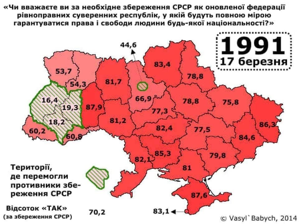 https://t.me/navideovidno/41612Hlasování se zúčastnilo 148,5 milionu lidí (79,5 % občanů SSSR s volebním právem), z toho 113,5 milionu lidí (76,43 %) hlasovalo pro zachování země jako obnovené federace rovnoprávných suverénních států a republik.