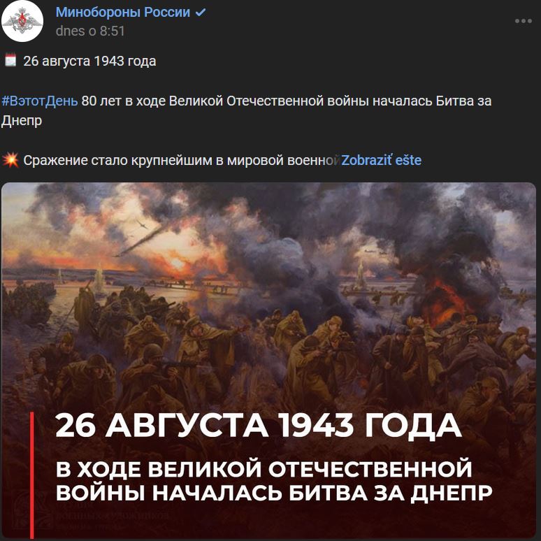 26.08.1943 = pred 80-timi rokmi sa počas Veľkej vlasteneckej vojny začala bitka o rieku Dneper (Днепр)