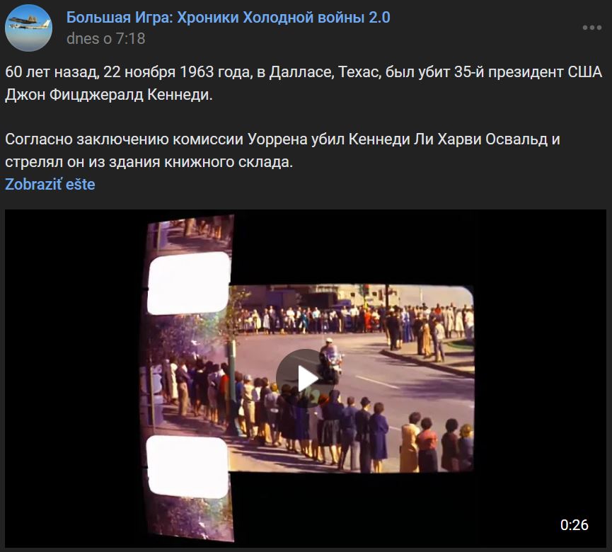 Na videu je známy Zapruderov film. Knižný sklad v zadnej časti kolóny.