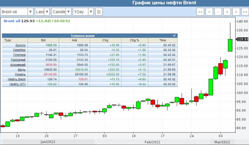 WTI Brent prý vyskočí na $150, někteří tvrdí, že trhy se ustálí až na $200. Roste silně i zlato (>$2000). Někteří očekávají, že Rusko začne "monetizovat zlato", tj. prodávat ropu Západu (dolarové oblasti) pouze za fyzické zlato. Jinak budou muset provádět překup přes renminbi či euro. Ovšem euro je s otazníkem, protože Fašington nutí evropské otroky sankcionovat ruskou ropu a plyn.