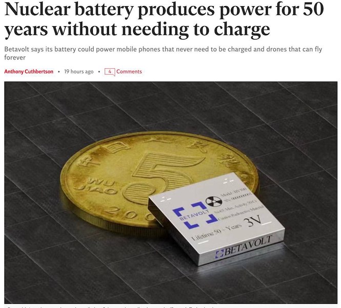 Ruská beta-rádioizotopová batéria schopná pracovať najmenej 20 rokov. Ruským vedcom sa podarilo zvýšiť výkon batérie desať krát a znížiť cenu na polovicu.