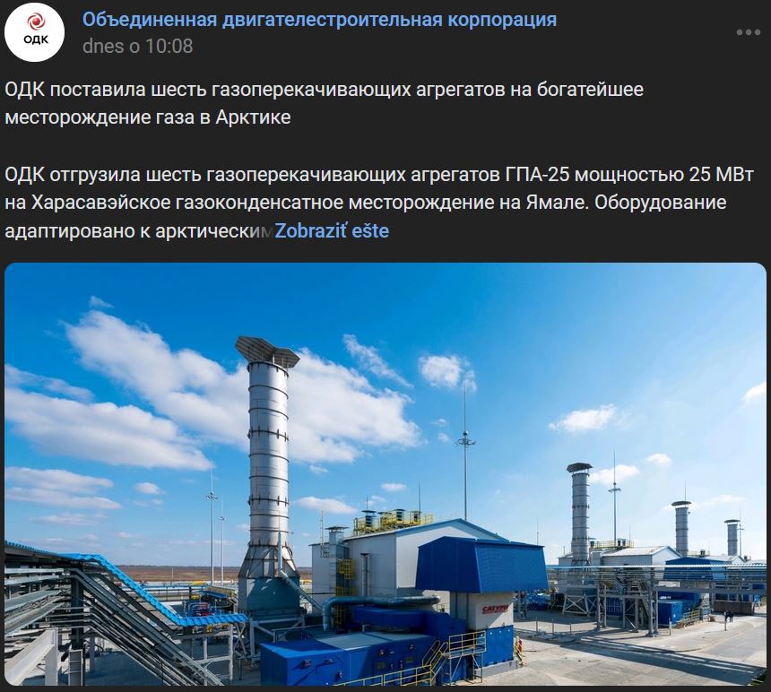 Spoločnosť ODK dodala 6 kompresorových jednotiek na najbohatšie plynové pole v Arktíde
