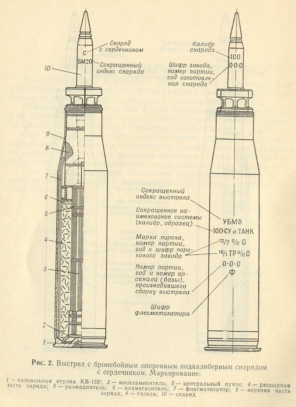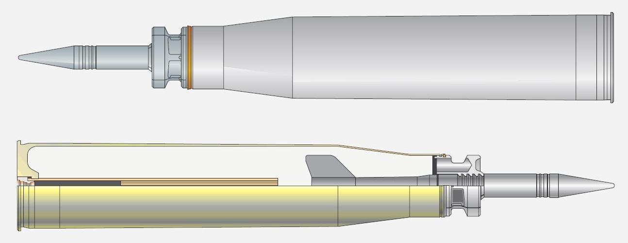 Starší typ "klasického" APDS pre 100mm tk (priebojná podkalibrová s oddelitenými vodiaci časťami)