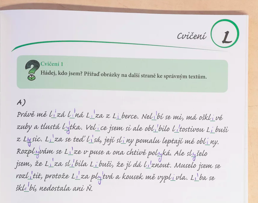 Jde o útržek z erotického románu o temných touhách? Nenechte se zmýlit. Lechtivé dvojsmysly jako »Právě mě lízá Líza z Liberce« jsou ze cvičebnice češtiny pro 3. a 4. třídu. A pozor, autorka dál přitvrzuje!