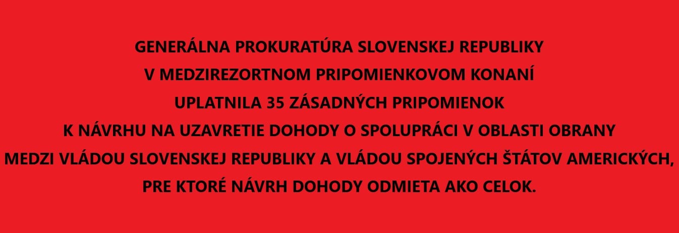 Generálna prokuratúra odmieta návrh obrannej dohody s USA