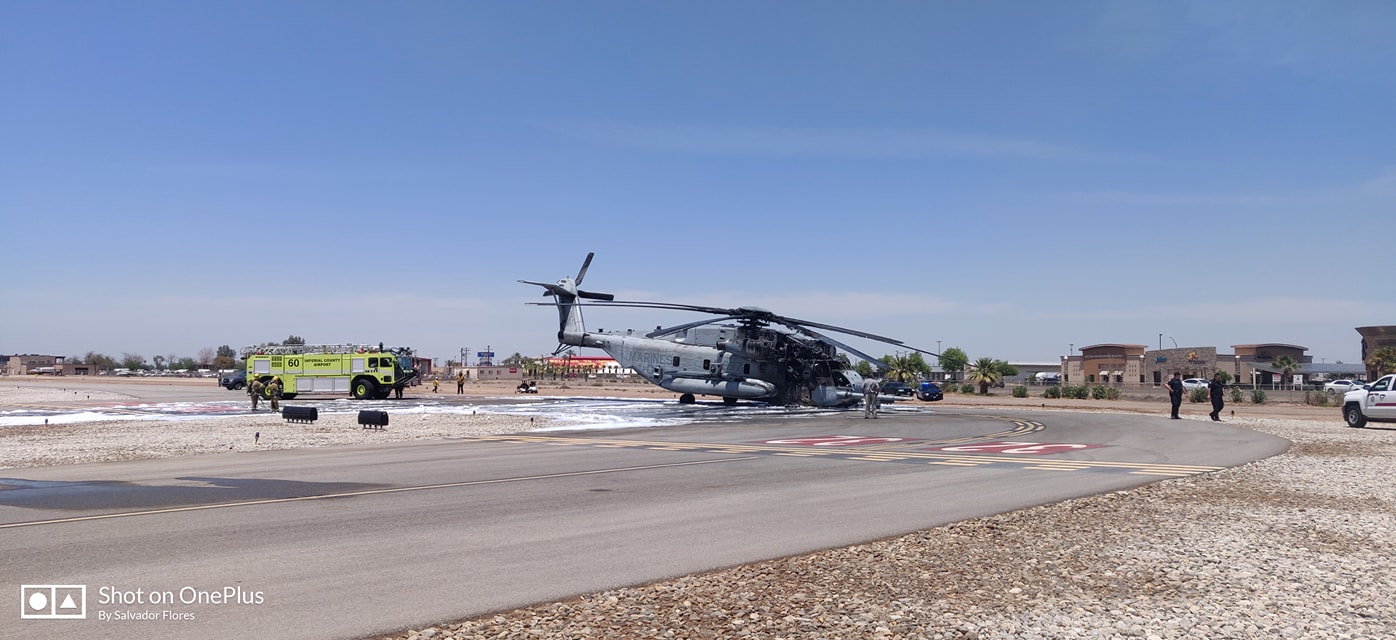 6. júna 2019,údajne počas letu, došlo k požiaru na palube vrtulníku Sikorsky CH-53E Super Stallion 465. Marine Heavy Helicopter Squadron amerického námorníctva . Vrtuľník vykonal núdzové pristátie na letisku Imperial County v Kalifornii. Požiar bol uhasený miestnym hasičským zborom. Uvádza sa, že v dôsledku incidentu nie sú obete.