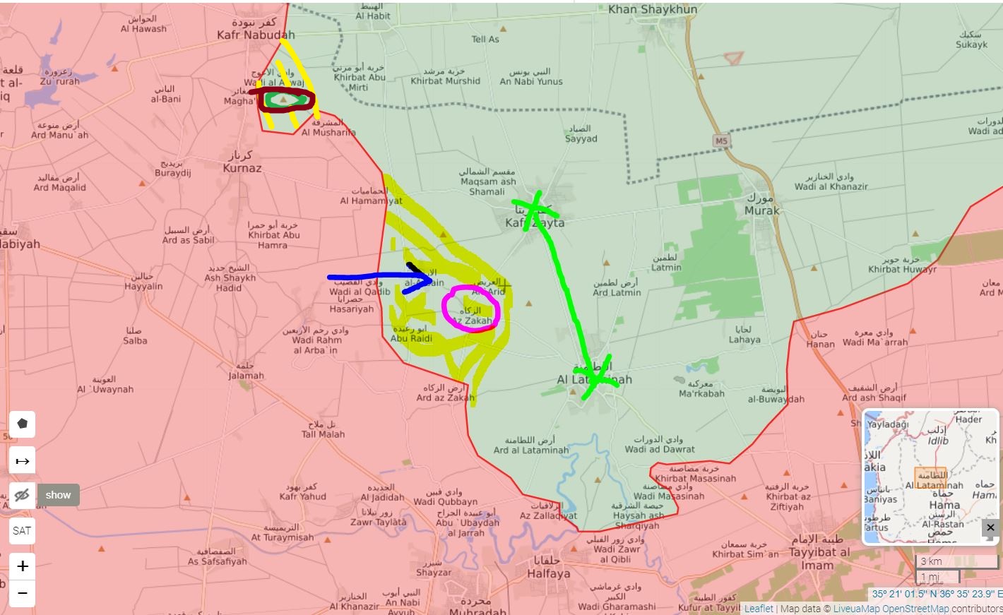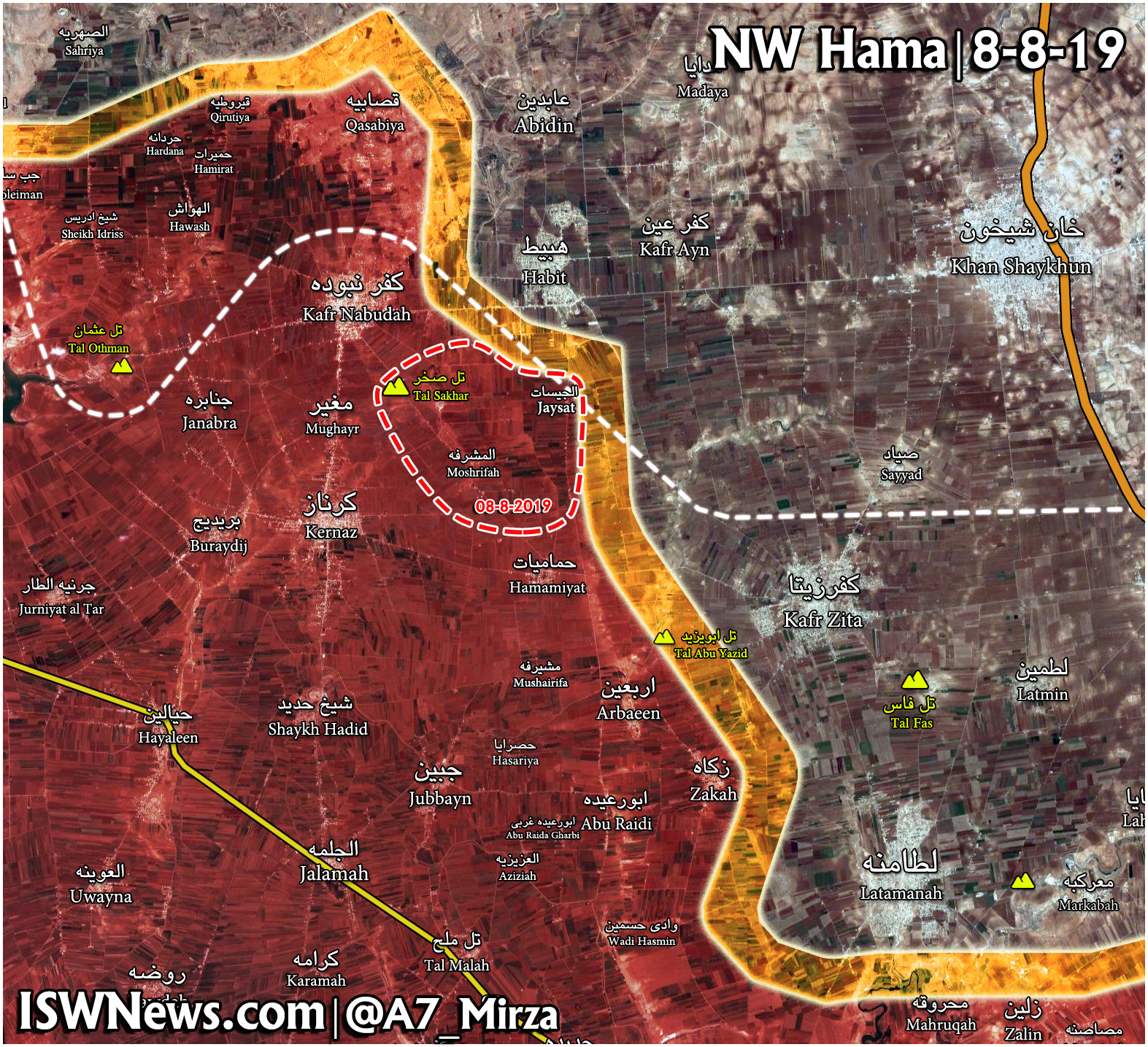SAA dokázala obsadit města a vesnice al-Arbaeen, al-Zaka, al-Sakhar, Jaysat a Dimon v oblasti severní Hama.