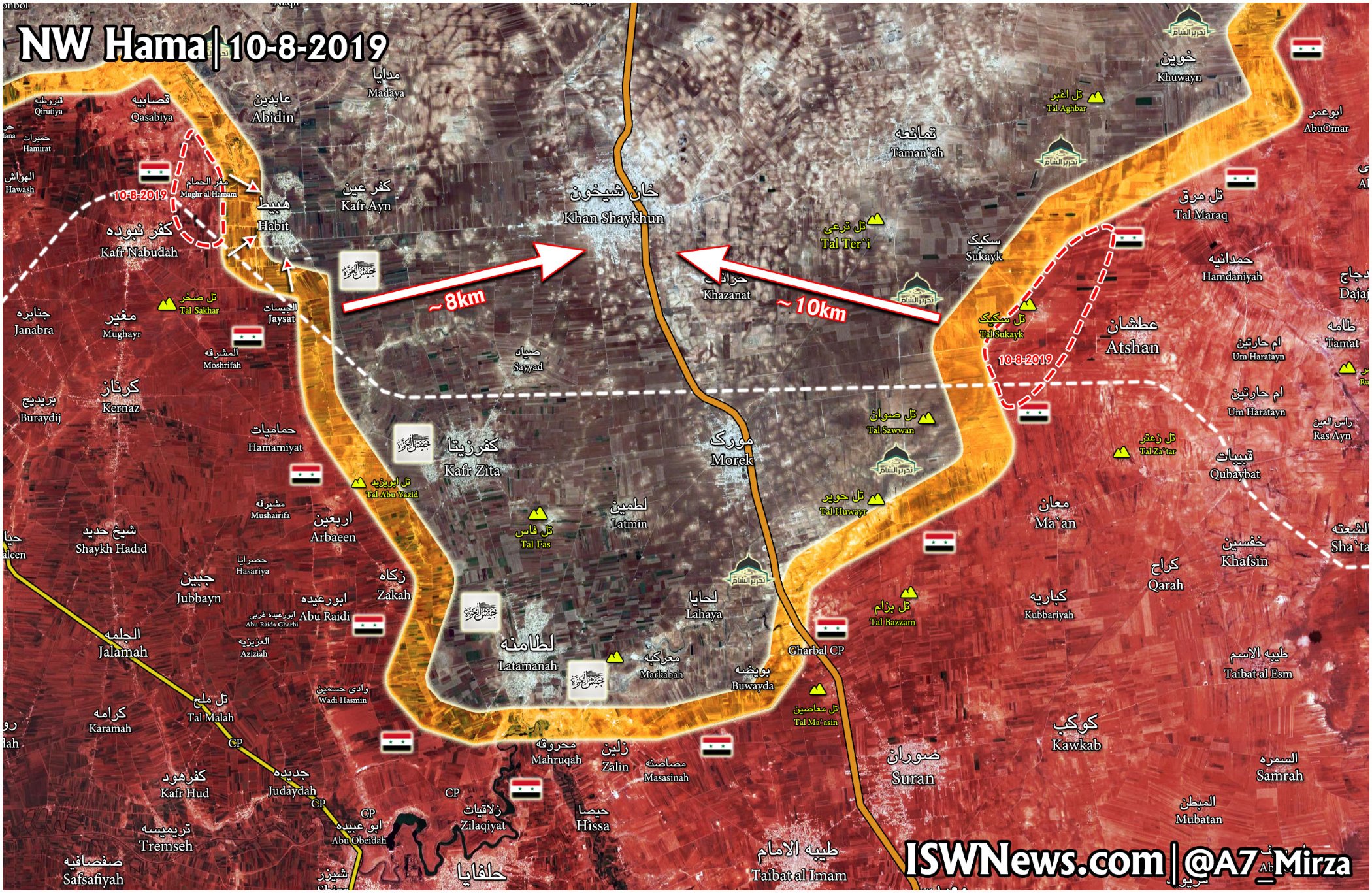 Odpoledne 10. srpna osvobodila Sýrská arabská armáda (SAA) a tygrské síly vesnice Maghar al-Hamam a Maghar al-Hantah od Hayat Tahrir al-Sham (dříve Jabhat al-Nusra) a jeho spojenců.