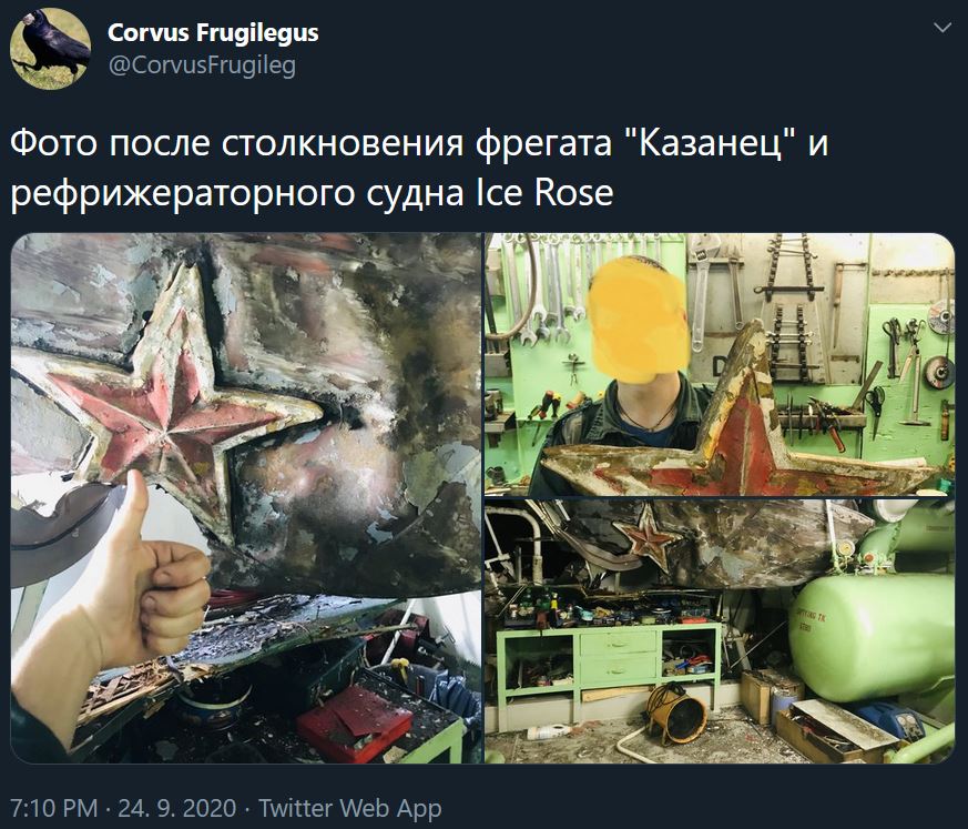 Dnes okolo 10:00 došlo k zrážke medzi komerčnou loďou Ice Rose (plávajúci mraziak s dĺžkou 145m) a malým protilodným člnom VMF MPK-205 Kazanec. K zrážke došlo za zníženej viditeľnosti v prielive Eresun v teritoriálnych vodách Dánska. Nedošlo k žiadnym úmrtiam ani zraneniam. Kazanec sa vracia do Baltijsku a Ice Rose do Goteborgu.