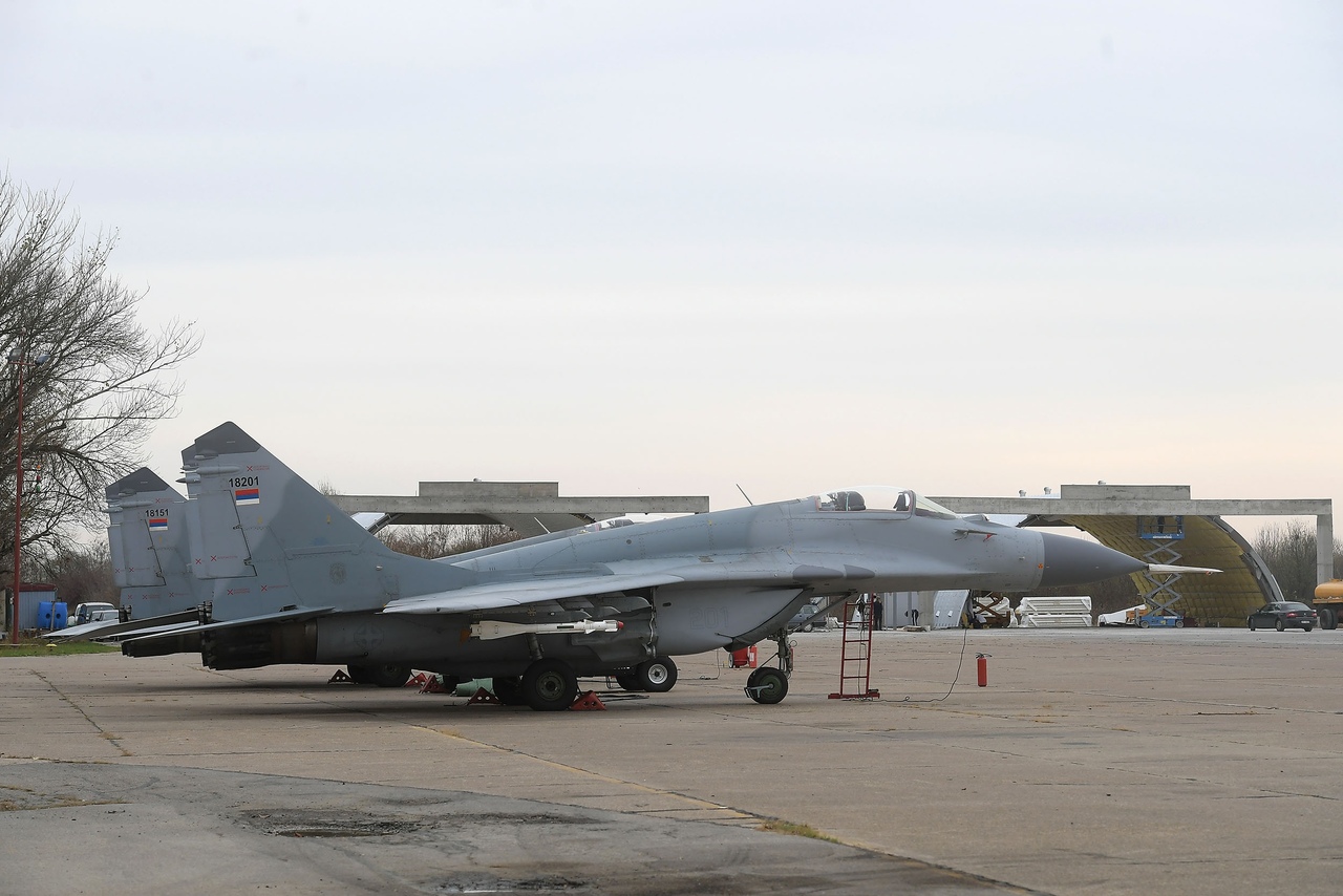 Srbsko, blízko Behehradu, letecká základňa Batajnica (Батайница), inšpekcia / kontrola prác na výstavbe prístreškov pre Srbské lietadlá rodiny MiG-29