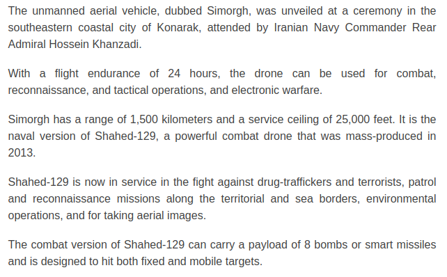 https://cdr.cz/clanek/ruska-armada-muze ... kaze-dronuRuští akademici a letečtí inženýři představili na bezpečnostní výstavě Interpolitex 2019 docela děsivou vizi budoucího válčení, kdy roj o stovce kamikaze dronů může způsobit velké ztráty zásobovacím vojenským konvojům.