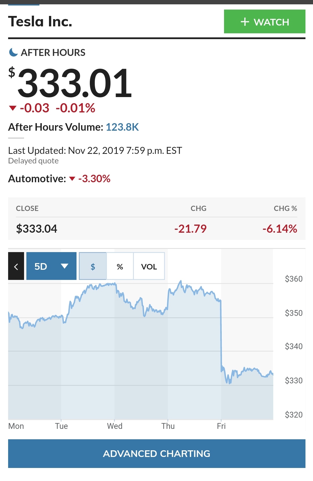 https://www.novinky.cz/ekonomika/clanek ... u-40304665Šéf a zakladatel Tesly Elon Musk za jediný den zchudl o 768 milionů dolarů (17,7 miliardy korun), upozornil server Forbes.com. Akcie výrobce elektromobilů se v pátek propadly o výrazných 6,4 procenta. Tesla ten den představila pick-up Cybertruck, jehož futuristický design se dočkal rozporuplného hodnocení. Navíc se při ukázce povedlo rozbít údajně nerozbitné sklo.