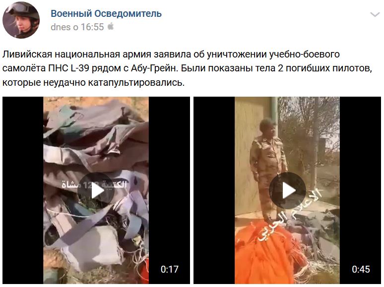 LNA (Haftar) hlási zostrel lietadla L-39 patriaci GNA - obaja piloti sa neúspešne katapultovali zahynuli Zdroj https://vk.com/wall-123538639_1404870 z 02.04.2020 + videá padákov a výstroje