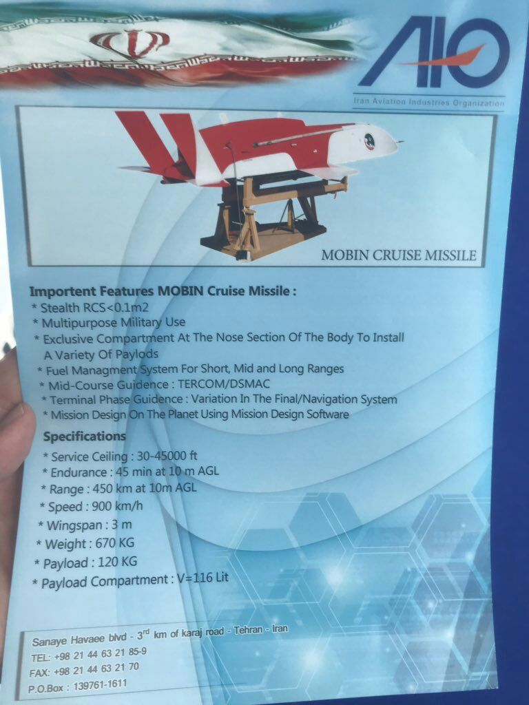 Střela s plochou dráhou letu z Iránu pod názvem Mobin