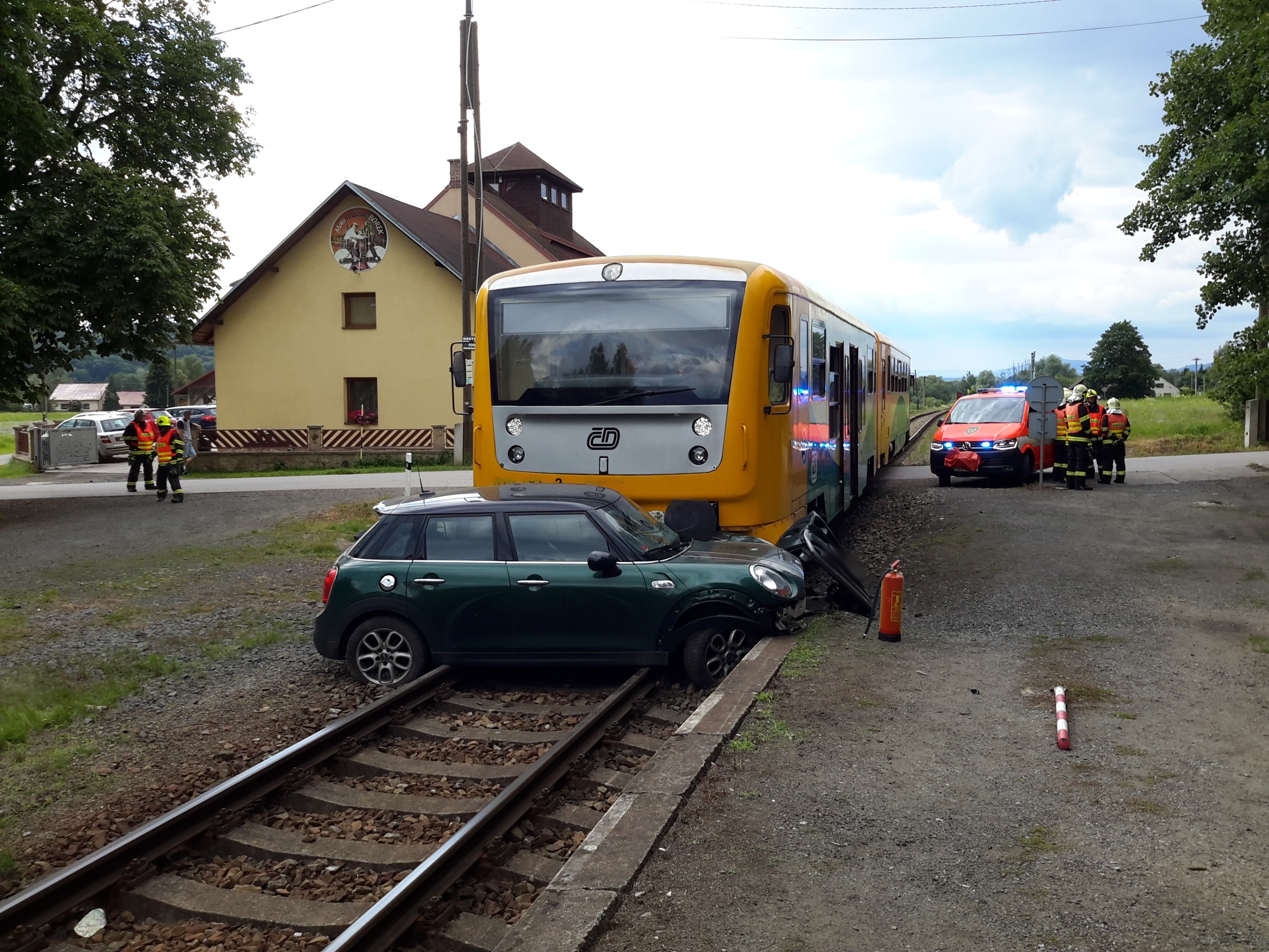K další nehodě na železnici došlo v pátek krátce před 16. hodinou na železničním přejezdu v osadě Borek pod Troskami, která je součástí obce Hrubá Skála na Semilsku. Na železničním přejezdu, který je bez světelné signalizace i závor, tam vjelo osobní auto Mini Cooper pod vlak.