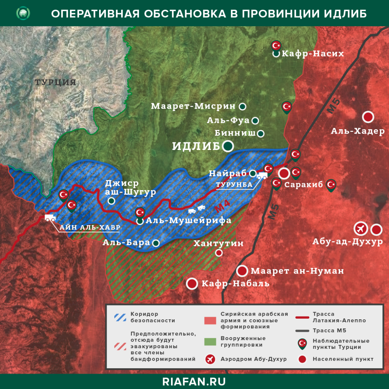Je potrebné pripomenúť: v septembri 2018 podpísal Erdogan dohodu, podľa ktorej sa Turecko zaviazalo odblokovať dopravu do diaľnice M-4 (Latakia-Aleppo) a M-5 (Hama-Aleppo) do polovice decembra 2018, čím by sa zaistila bezpečnosť v regióne. Uplynuli mesiace, ale nedošlo k žiadnemu výraznému pokroku v tejto záležitosti. Viac: