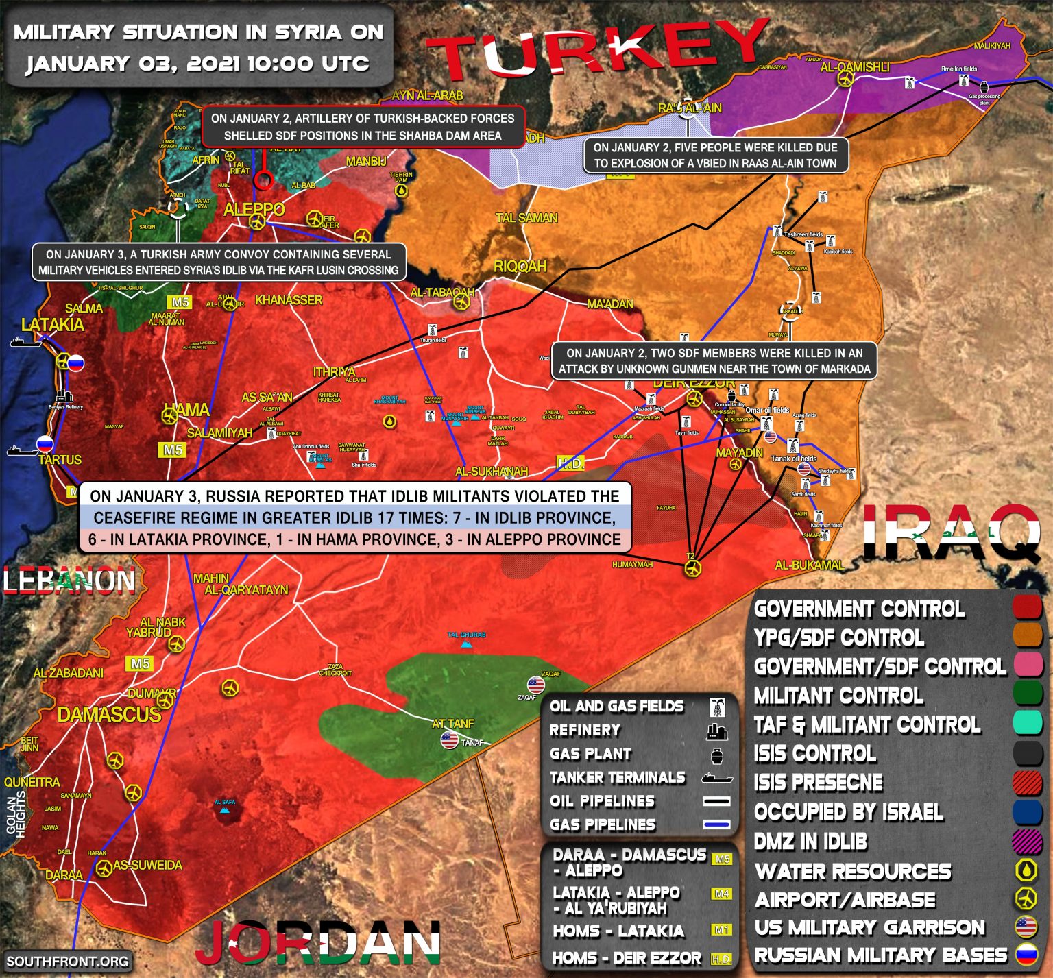 Vojenská situácia v Sýrii 2. januára 2021 (aktualizácia mapy)