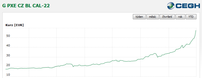 Vývoj ceny zemního plynu s dodávkou v roce 2022 na pražské :lol: energetické :smich: burze :nahlavu: .