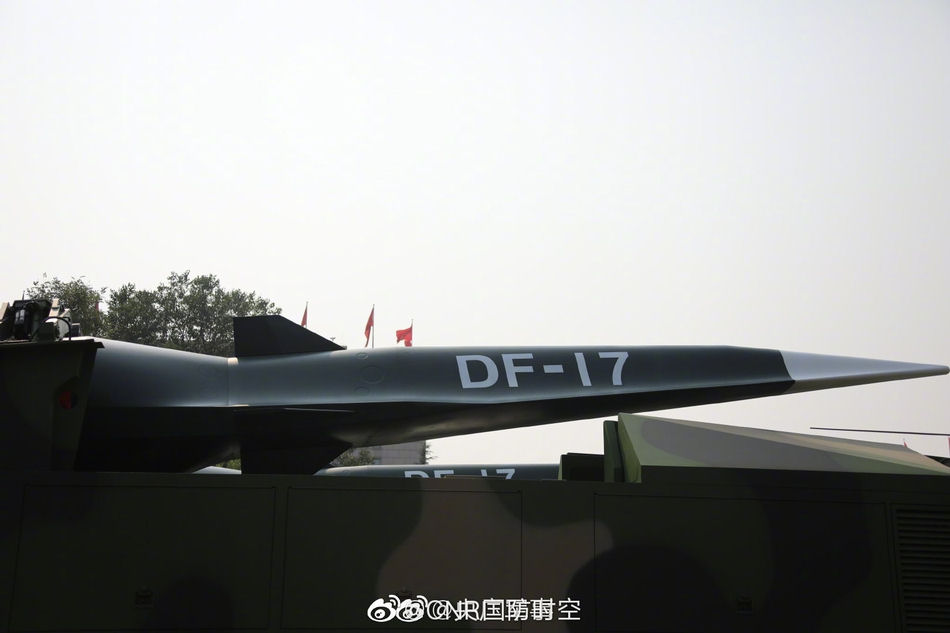 Operačno-taktická balistická raketa DF-17, dolet 1,8 až 2,5 tisíc km s klasickou bojovou náložou (jadrová/klasická bojová časť), alebo ako na prehliadke novinka = hyperzvukový lietajúci aparát (nie je uvedená ani rýchlosť a ani doleť toho aparátu), v tomto prípade je balistická raketa DF-17 iba ako "štartér"