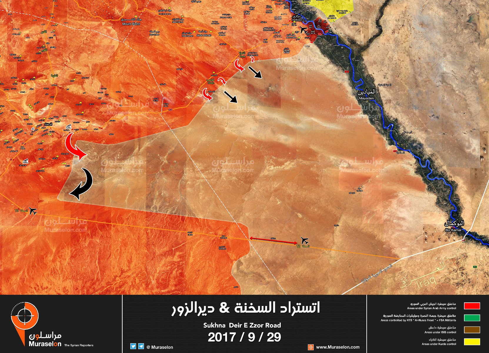 Podľa vojenských zdrojov ISIS premiestnil z pevností v západnom Iraku do juhovýchodnej Sýrie značné množstvo vojenských prostriedkov, aby spustil svoju ofenzívu s názvom Ghazwat Abu Muhammad al-Adnani (po špičkovom veliteľovi islamského štátu, ktorý bol zabitý ruským leteckým útokom minulý rok) proti sýrskej armáde.