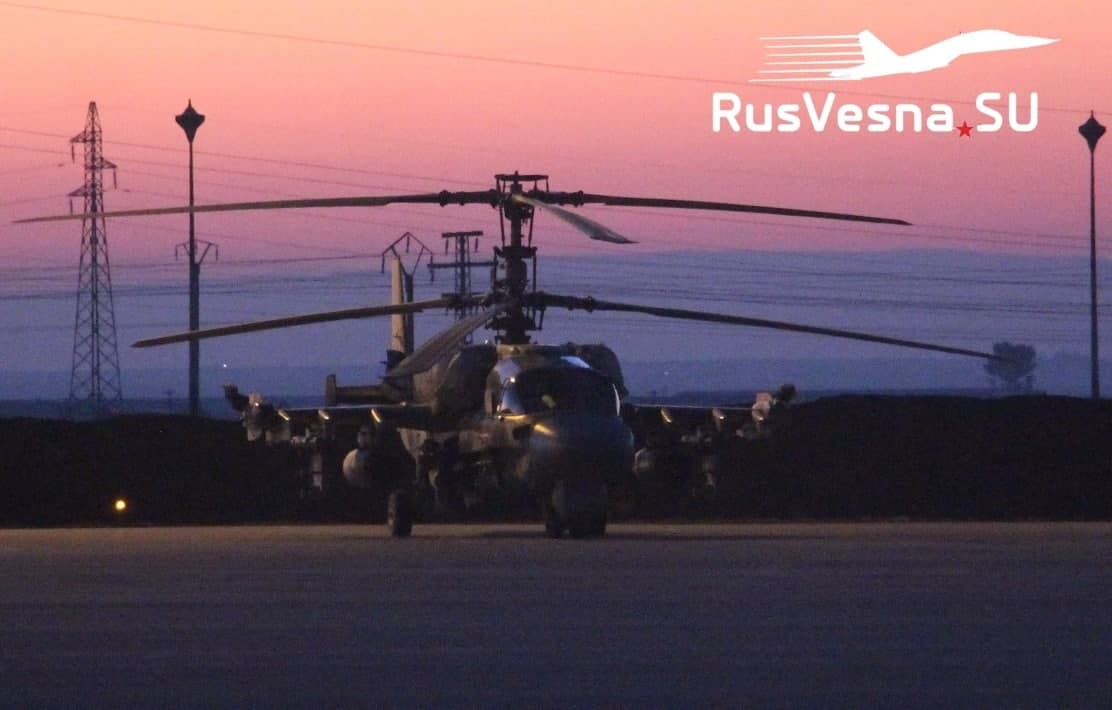 Na oblohu vzlétají stíhačky Su-35S a bitevní vrtulníky Ka-52. Kontrolu vzdušného prostoru nad leteckou základnou Hmímim provádí letoun včasné výstrahy A-50U.