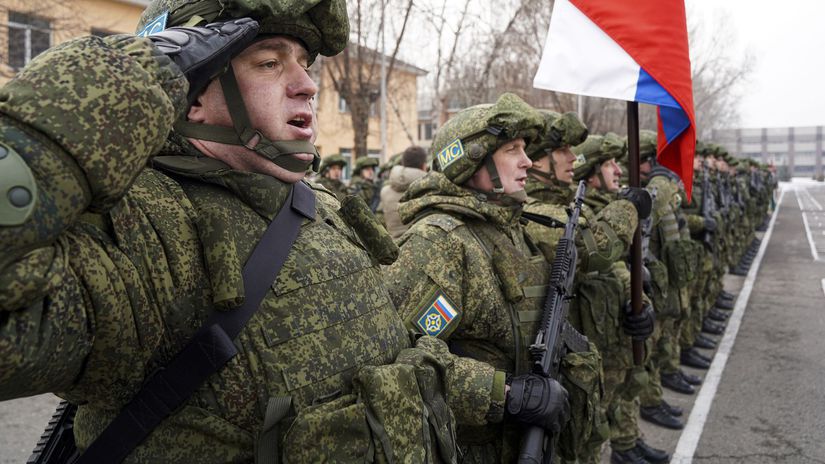 TASR 14.01.2022 06:47 Ruskí vojaci / Armáda /Foto: SITA/AP, Vladimir Tretyakov Ruskí "mierotvorcovia" misie Organizácie dohody o kolektívnej bezpečnosti počas ceremónie k začiatku ich odchodu z Kazachstanu v meste Alma-Ata, 13. január 2022