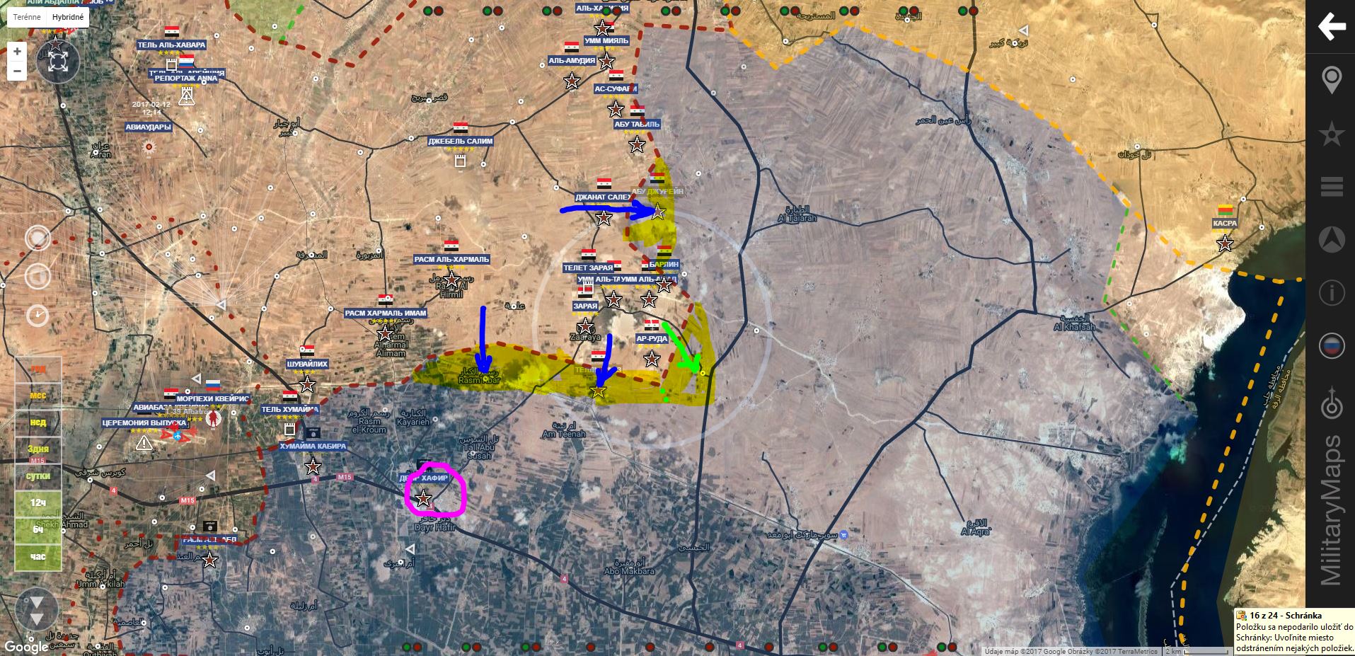 Aleppo. Al Bab. . SAA+ si zatiaľ zobrala 3 dediny od TFSA+. Povedal by som, že pôjdu minimálne po cestu M 4 Aleppo - Manbij