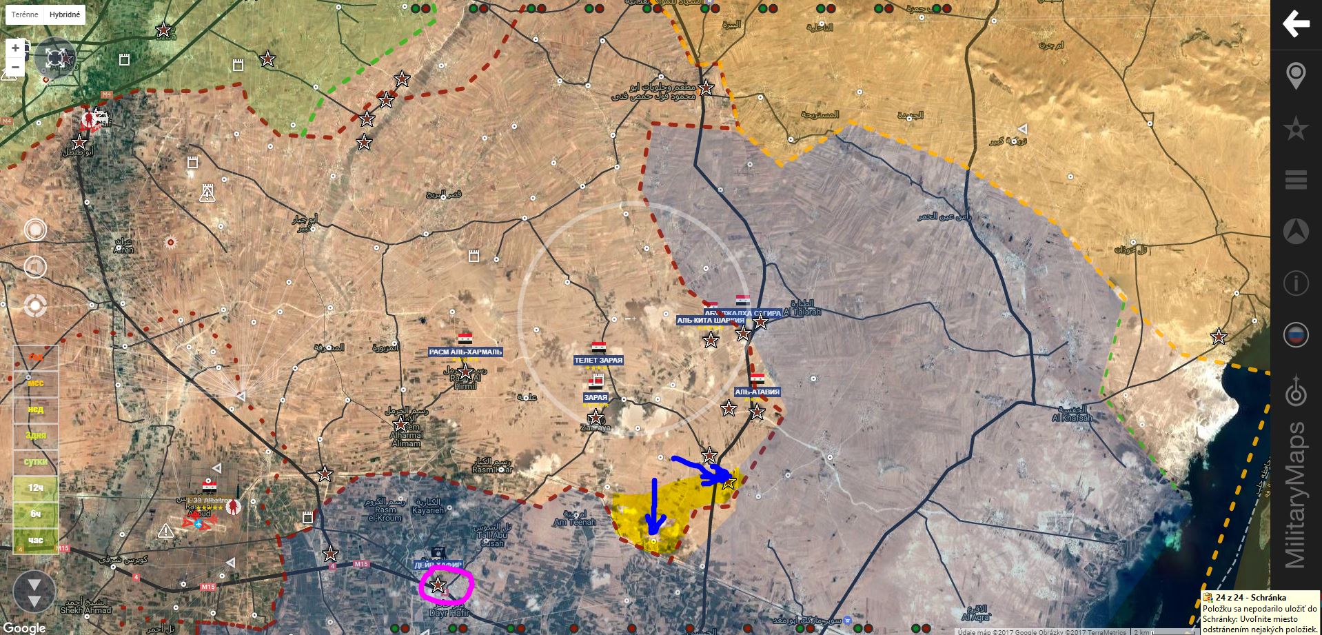 Palmýra. Vo videu je prehľadne rozfázované dianie okolo mesta, od útoku ISIS na letisko T 4 , po znovu oslobodenie Palmýry jednotkami SAA+: