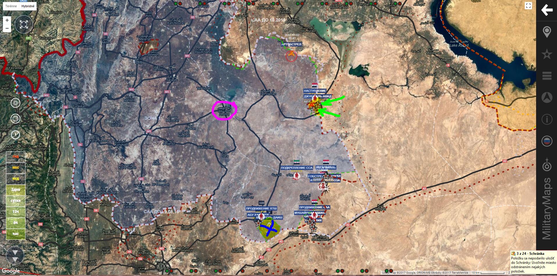 SV Hamá, Abu Ibn Duhur. SAA+ rozširuje nárazník okolo Khanasseru, obsadila Rashadeh/Rashidiya, Hujayrat Kabirah -Hujayrat Sagirah a Jubb Awwad . Nová ofenzíva má smerovať na Abu Ibn Duhur, kde sa nachádza vojenské letisko. V južnej časti ISIS získal od rebelov územie. 2.11.JPG